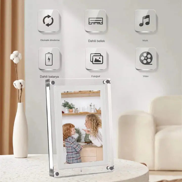 Göz alıcı dijital anı çerçeveleri, evinizde veya ofisinizde eşsiz bir atmosfer yaratmanıza olanak tanır. Her zevke ve tarza uygun renk ve boyut seçenekleriyle yaşam alanlarınıza şıklık katabilir, unutulmaz anılarınızı bu çerçevelerle ön plana çıkarabilirsiniz.